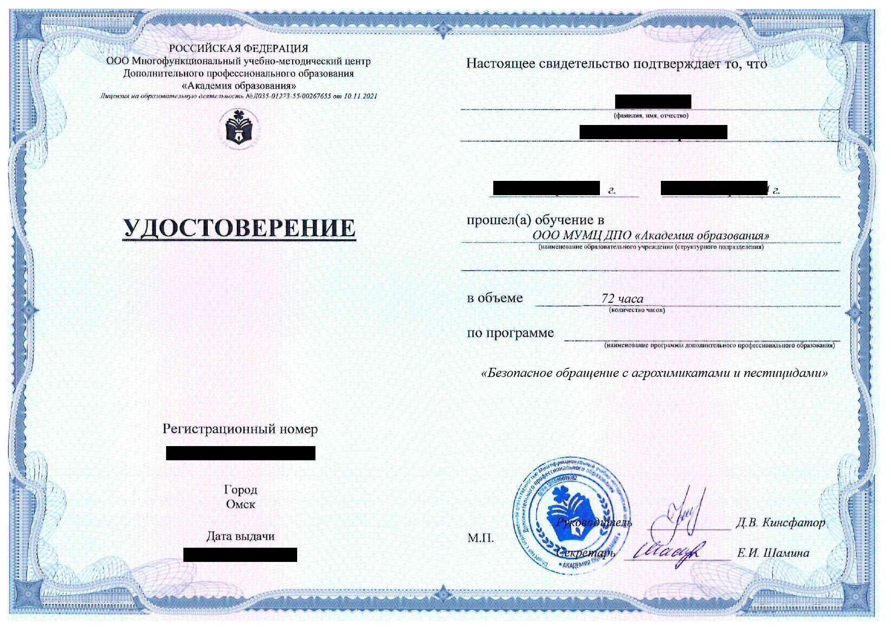 - Удостоверение о повышении квалификации (при наличии среднего профессионального или высшего образования);