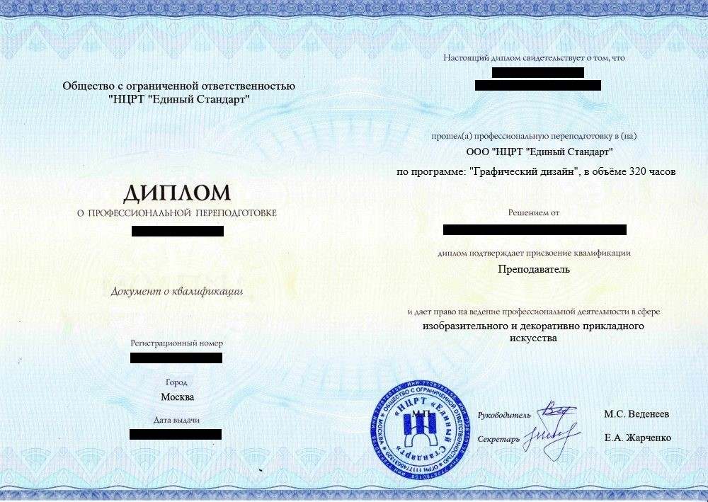 • Диплом о профессиональной переподготовке установленного образца. Срок действия:  бессрочно
