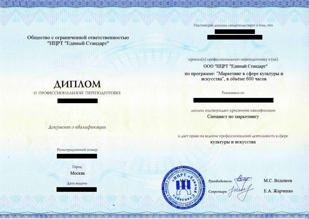 • «Специалист по маркетингу» с правом ведения профессиональной деятельности в сфере культуры и искусства