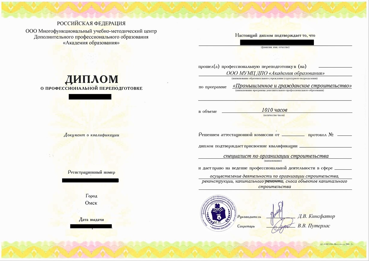 - Диплом о профессиональной переподготовке установленного образца. Срок действия: бессрочно